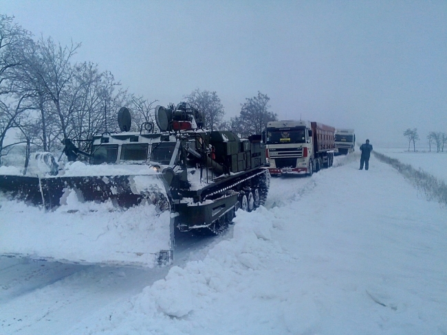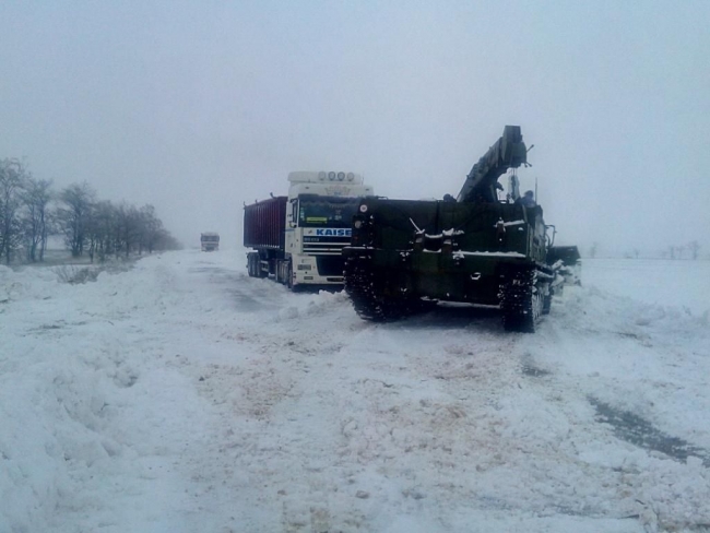 Примерно в 6 утра на автодороге г. Мелитополь - с. Новониколаевка застряли сразу 11 автомобилей, четыре из которых – грузовые, сообщили в областном управлении ГСЧС. Освободить из снежного плена транспорт удалось лишь при помощи «тяжелой артиллерии»: спасатели задействовали советский путепрокладчик БАТ-2 . К счастью, ни водители, ни авто не пострадали и смогли продолжить дальнейшее следование.
