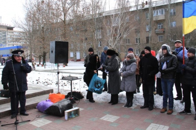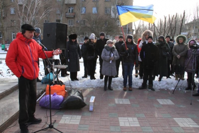 26 января на пл. Победы у памятника Кобзарю прошел традиционный митинг. Несмотря на морозную погоду, мелитопольский «майдан» пришло несколько десятков человек.