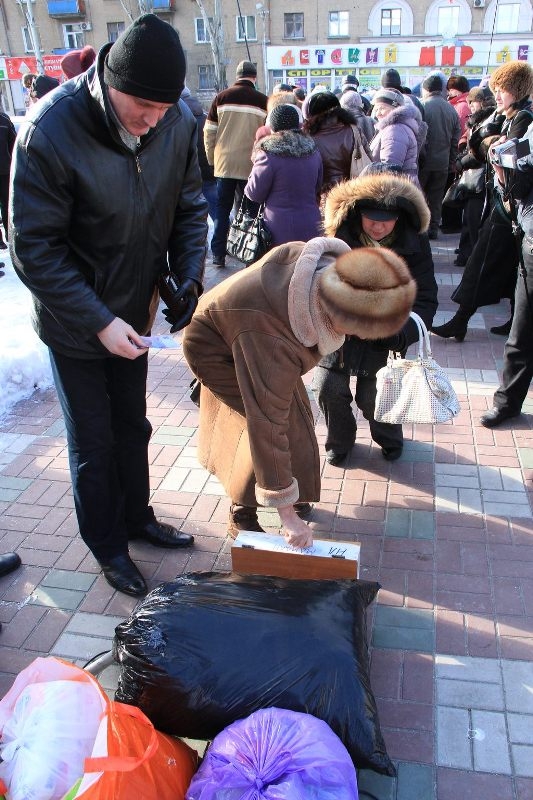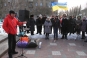 Продолжился сбор средств «На революцию». Но главной темой дня, конечно, были столичные события. Почтили минутой молчания погибших на Майдане. Поверх флагов Украины развевались траурные черные ленты, они же были на одежде у некоторых участников.