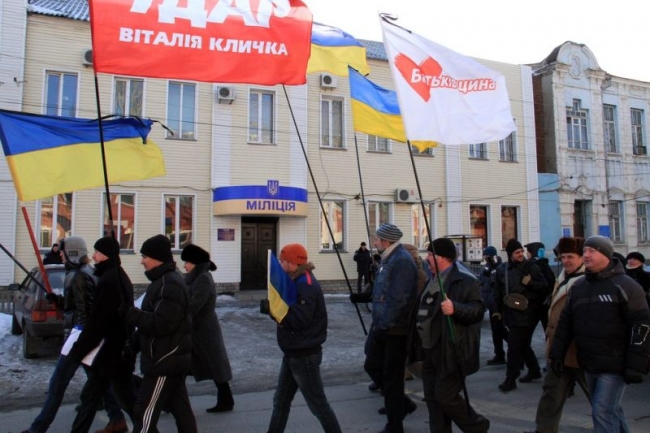 К участникам акции обратился и лидер Мелитопольского УДАРа Алексей Булгаков, который сейчас находится в Киеве вместе с тремя десятками представителей оппозиционных партий.