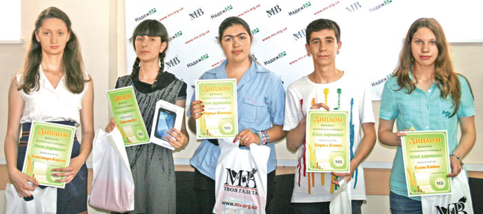 2 июня, на второй день празднования Дня защиты детей, пять финалистов пришли в редакцию, чтобы своей рукой вытащить счастливую карточку с надписью «Планшет». Жюри было непросто сделать выбор, но лучшими были названы: Фериде Изетова, Елена Кийко, Кирилл Копич, Кристина Бут и Александра Корун (на фото). Впечатляет, что все финалисты пишут стихи не так давно - от трех лет до года, но у каждого уже свой стиль.