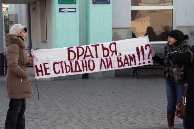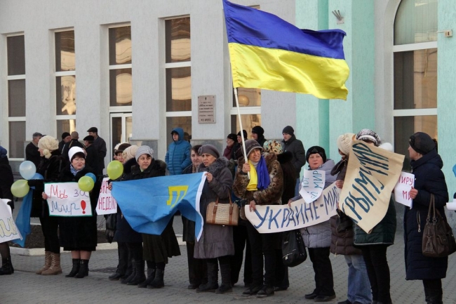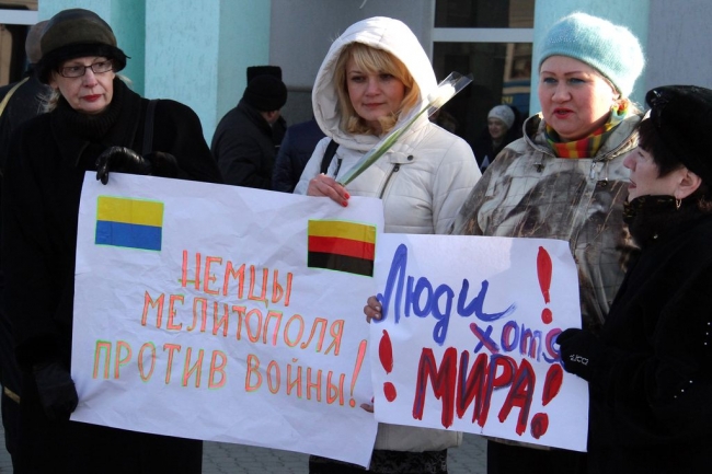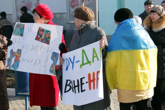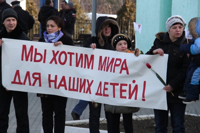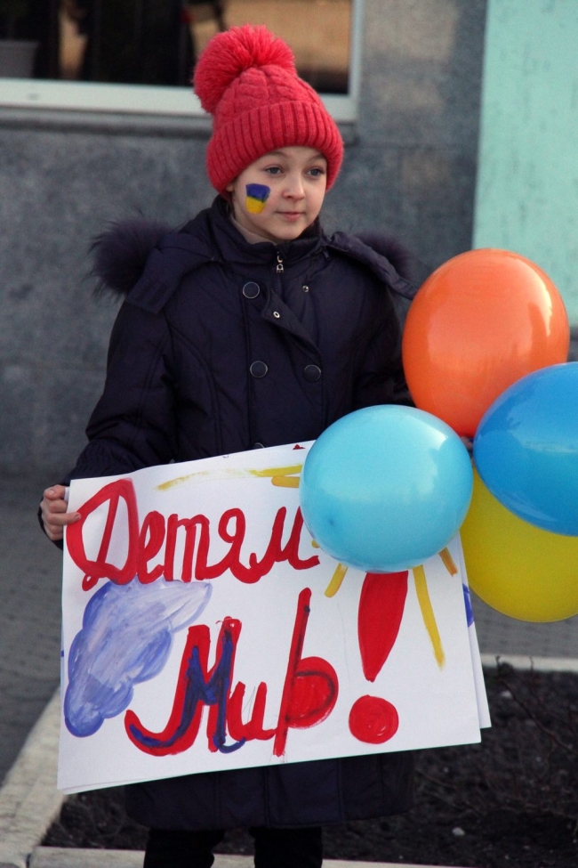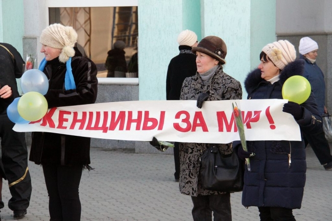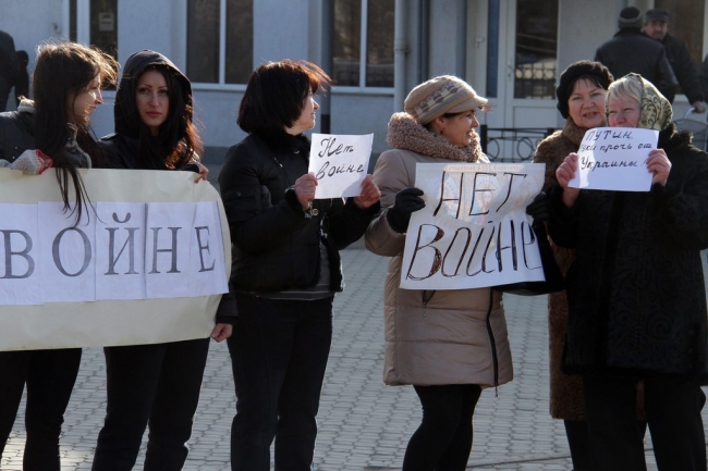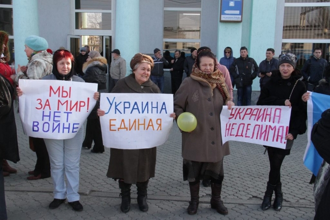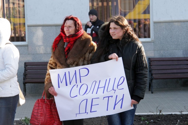 «Хотят ли русские войны», «Детям нужен мир», «Украина не делима», эти и другие плакаты, призывающие к мирному урегулирование конфликта в Крыму, держали в руках представительницы прекрасного пола.