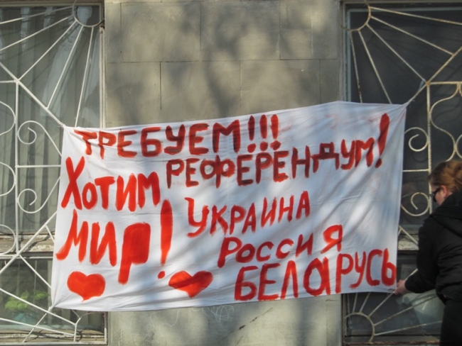 Другие активисты говорили, что хотят мира, а не войны, но проведение референдума считают нужным, а потому выступают за него.