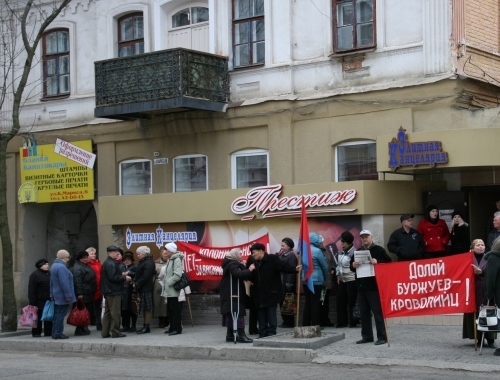 По уже сложившейся традиции сегодня перед началом сессии городского совета возле стен исполкома прошел митинг. На этот раз депутатов встречали около полутора десятков приверженцев идеи вступления Украины в Таможенный союз.