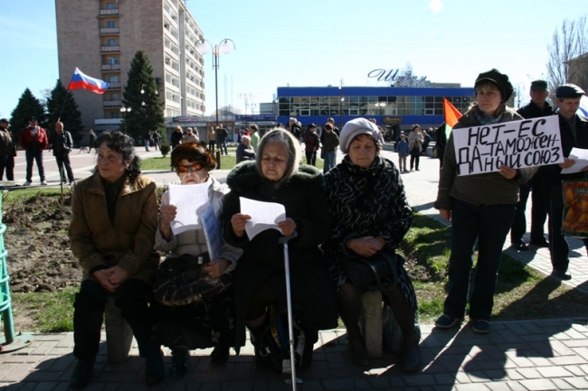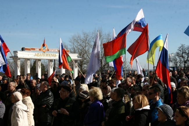 - Сегодня, как видите, у нас есть и украинские флаги, и флаги Мелитополя, - говорит активиста Екатерина Уманец. – Мы не хотим развала Украины и в сепаратизме нас обвинять не надо. Главное сейчас сплотится против незаконной киевской власти. А еще мы очень хотим, чтобы у людей спросили, хотят они в Евросоюз или в Таможенный союз.