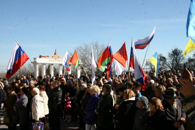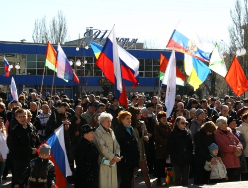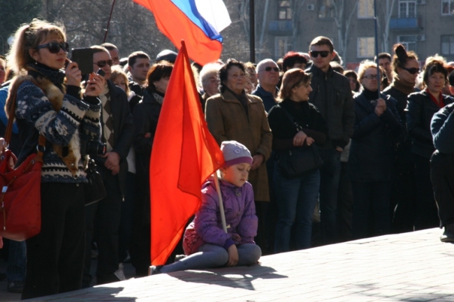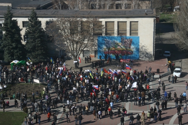 Митинг длился несколько часов. Все это время на сцену поднимались горожане, которые видят дальнейшее развитие Украины только в содружестве с Россией. Они доносили свою позицию до зрителей: «Разве за такую независимость боролись наши деды? Неужели теперь мы будем воевать против нашей памяти», «Мне кажется, что демократия от слова демон», «Новое правительство Крым прос*ало, чего мы ждем?», «В Крыму люди радуются, что такое произошло. Они ползли с костылями на избирательные участки, чтобы выразить свою волю». «То, что татары не поддерживают вступление Крыма в Россию – вранье. Татары прописывали у себя русских, чтобы те могли проголосовать». «Янукович, вернись и наведи порядок. Ты виноват, что у нас в стране творится, тебе это и исправлять».