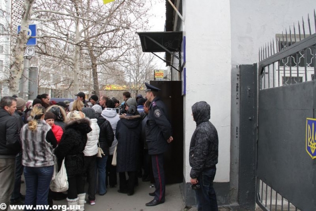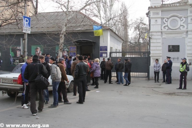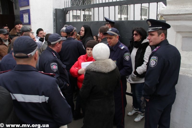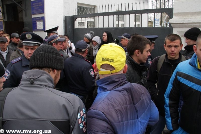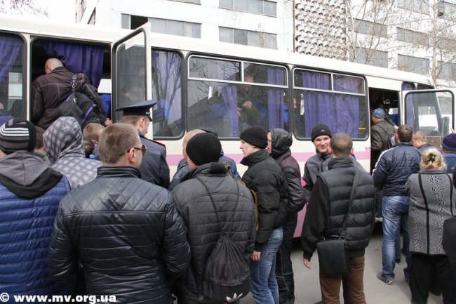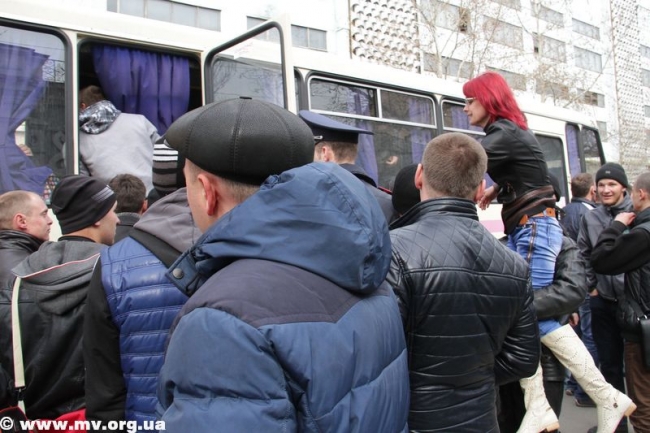 В начале одиннадцатого к военкомату подъехал автобус, из ворот вышла колонна мобилизованных. Протестующие пытались преградить им путь к автобусу, людей оттесняла милиция. Отметим, что никто из мобилизованных сбежать не пытался, хотя такая возможность у них была. Парни с трудом протолкались сквозь толпу и сели в автобус. Из ворот военкомата выехало еще два автомобиля «Газель». Всего в Запорожье отправилось 150 человек.