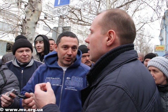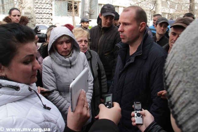 К протестующим вышел секретарь горсовета, исполняющий обязанности городского головы Сергей Минько. Конструктивного общения не получилось, люди говорили одновременно и не давали политику отвечать на вопросы. По словам С. Минько, в случае, если его призовут, он исполнит свой долг, а также готов отпустить служить и своего сына, просто он еще не призывного возраста.