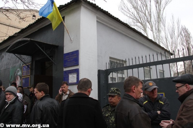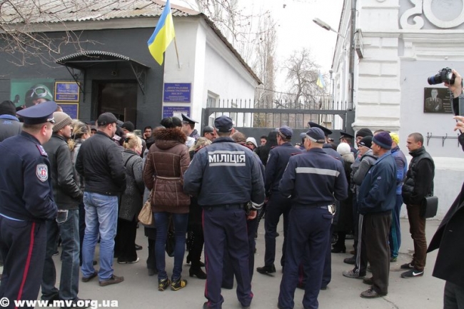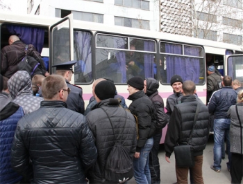 Пророссийские активисты пытались перекрыть путь автобусам своими телами. В происходящее вмешалась милиция.