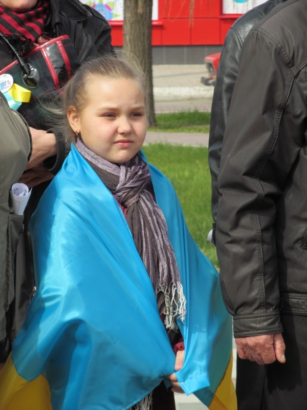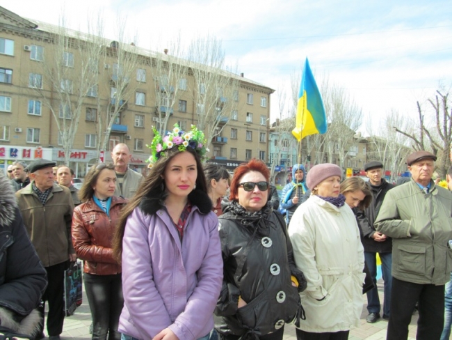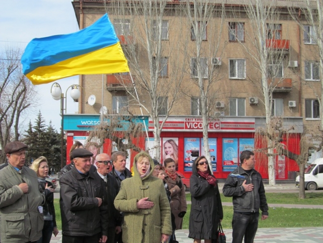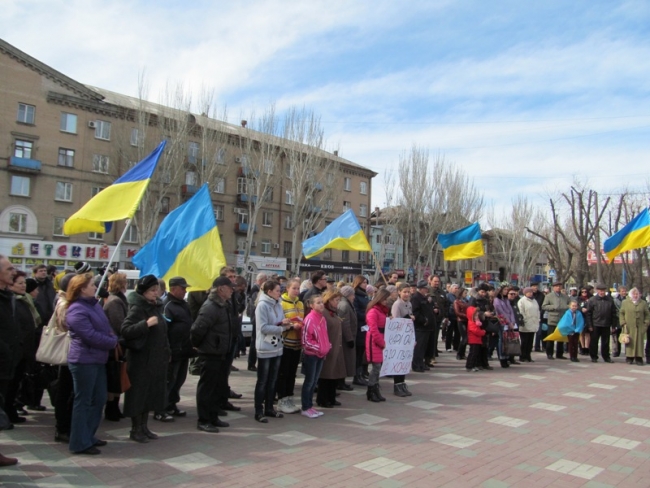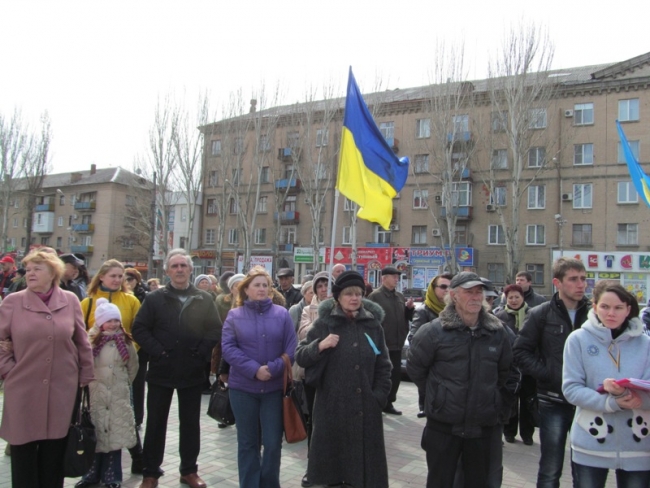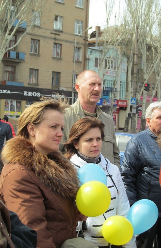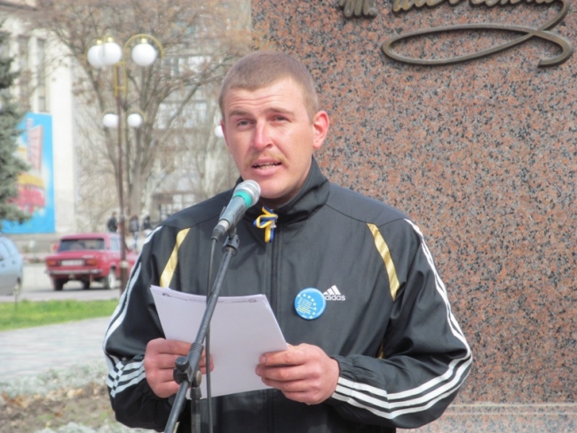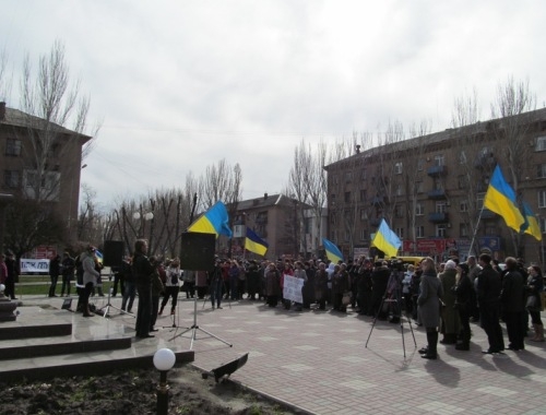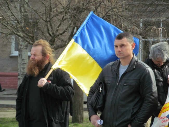 Алексей Ревенок в своем выступлении упрекнул городскую власть за разрешение митингов под российскими флагами. За то же «досталось» и членам «Самообороны». Кроме того, он рассказал, что перекрашенную вчера стелу на въезде в город вернули в прежний вид:
