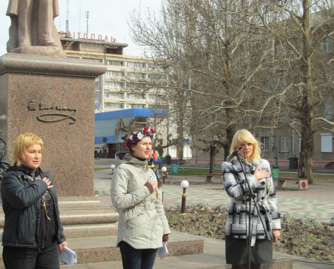 Митинг возле памятника Кобзарю прошел под национальными флагами. Главная его идея – объединение украинцев, единая страна.