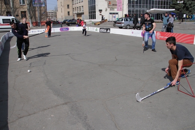 Одновременно здесь работали площадки, где студенты давали мастер классы по различным видам спорта. Так, на площади можно было покорить 10-метровый скалодром, сыграть в американский футбол и флорбол, побросать мяч, попрыгать через скакалку и попробовать выполнить несколько гимнастических этюдов, почувствовать себя канатоходцем и просто порисовать мелом на асфальте.