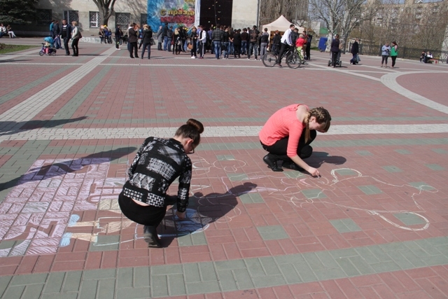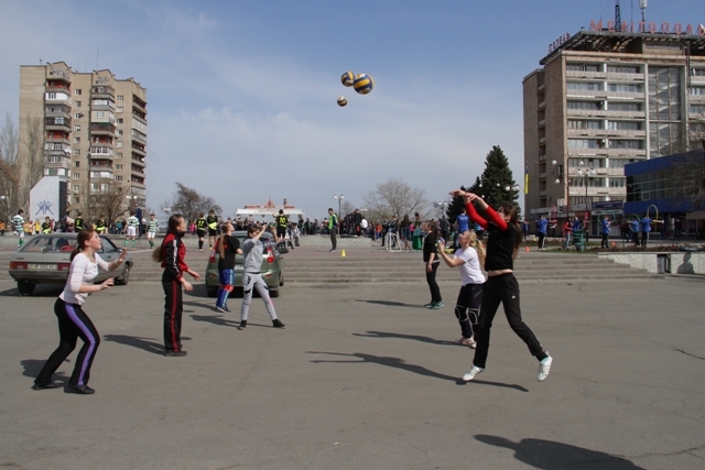 Открывая праздник, студенты-спортсмены прошли парадом от центрального проспекта на площадь, неся огромное сине-желтое полотнище – флаг Украины. После ряда приветственных речей наступило время масштабного флешмоба: несколько сотен студентов одновременно стали на зарядку. Незамысловатые движения под украинскую «Дівчина - весна» с энтузиазмом выполняли и парни, и девушки. А после этой разминки пять команд учебных заведений города (МГПУ, ТГАТУ, ЗИЭИТ, Высшее училище культуры, Мелитопольский профессиональный лицей) стартовали, чтобы пройти по витиеватым маршрутам спортивного квеста.