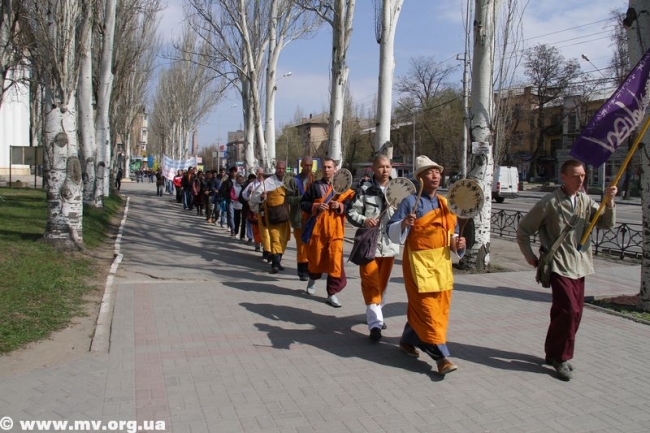 В рамках Марша монахи и последователи буддизма проходят по крупным городам Центра и Юго-Востока Украины. Главное, чего они хотят, это пробудить в людях и природе энергию, которая поможет нашей стране преодолеть кризис.
