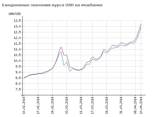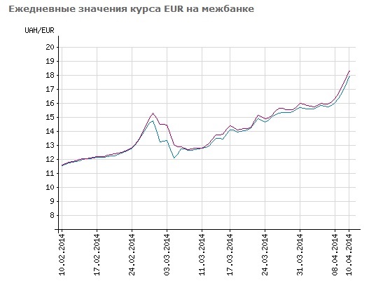 Если брать официальный курс НБУ, установленный на начало 2014 года (7,99 гривны за доллар), девальвация национальной валюты за три месяца составила около 58%, что является мировым рекордом.