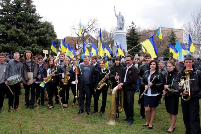 У памятника Б. Хмельницкому состоялся митинг. Выступавшие призывали к миру. Говорили о том, что Украина - это наша страна, и мы сами должны навести в ней порядок, а помощники нам не нужны.