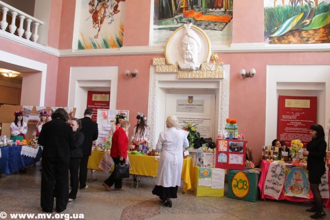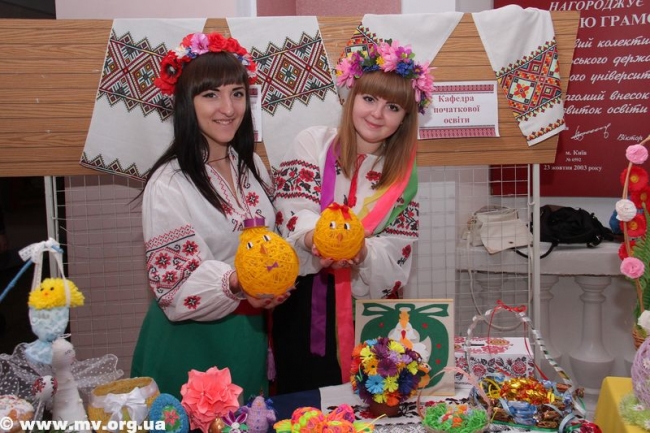 22 апреля в холле первого корпуса МГПУ имени Б. Хмельницкого развернулась выставка творческих работ «Пасхальная мастерская». На столиках можно было увидеть мягкие, резные, плетеные, бумажные крашенки, а также писанки, расшитые бисером и пайетками, вышитые иконы, храмы, выполненные в технике модульного оригами, корзинки с цыплятами, печеных зайцев и многие другие символы светлого праздника Пасхи.