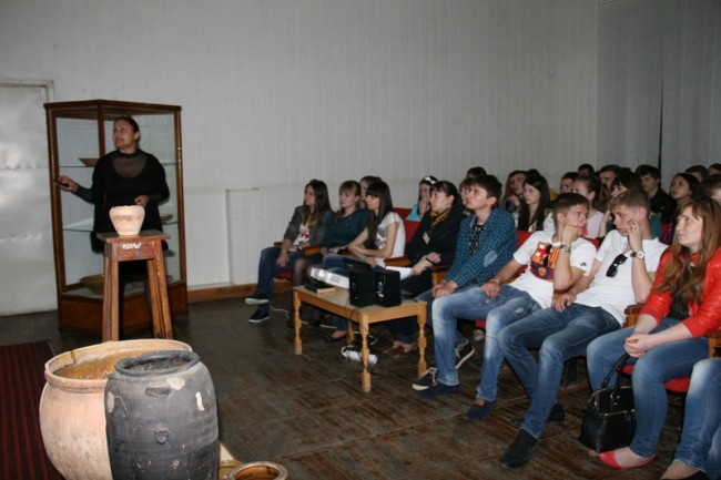 24 апреля в Мелитопольском городском краеведческом музее студенты ТГАТУ и ВПУ-40 услышали интереснейшую "Гончарную историю" из уст сотрудника музея Татьяны Шевченко-Чепелевой и ее "помощников": льва, барана, кувшина и макитры.