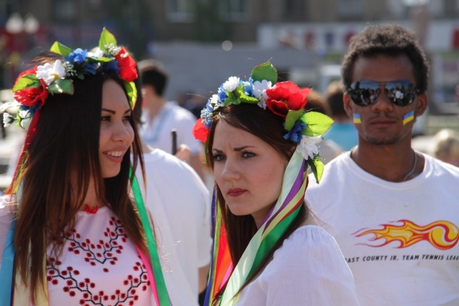 Под песню Гайтаны "Сонце нам сяє!" молодежь танцевала, образовывала фигуры, показывала финты на BMX, а после под гимн Украины развернула огромный сине-желтый стяг.