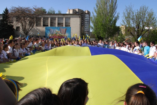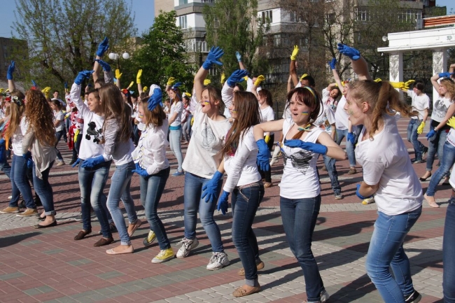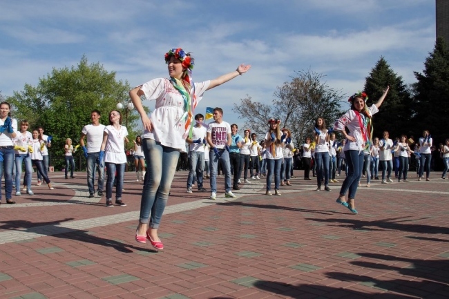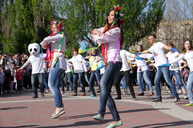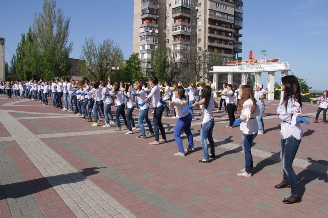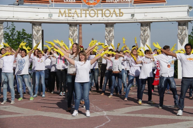 26 апреля на центральной площади Мелитополя более 200 юношей и девушек устроили грандиозный патриотический флешмоб.
