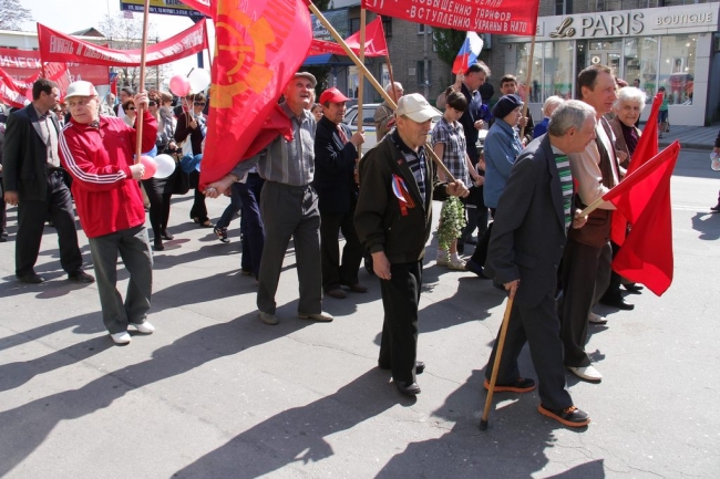Сегодня мелитопольские коммунисты проведи традиционную Первомайскую демонстрацию.