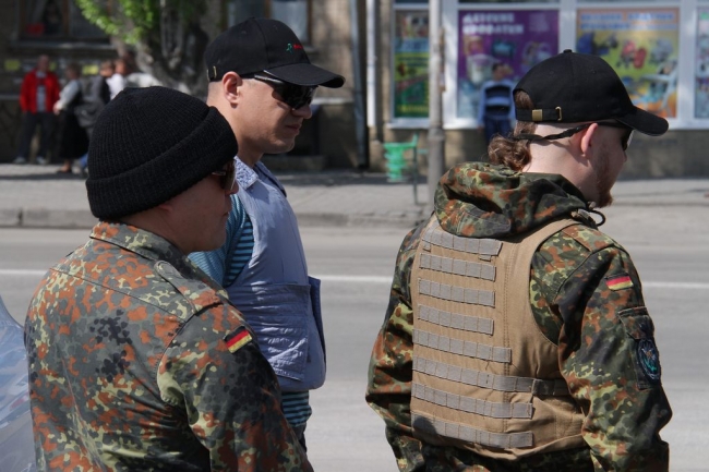 Самое интересно, что чуваки (наблюдатели) на фото в камуфляже с нашитыми немецкими флагами Германии.
