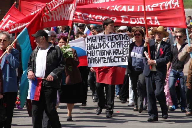 К шествию присоединились и пророссийски настроенные горожане. Их лидер Екатерина Уманец вместе с Т. Геновым и еще одним депутатом-коммунистом Максимом Зубаревым шла в первом ряду демонстрации, а позже активно участвовала в митинге у памятника Ленину.