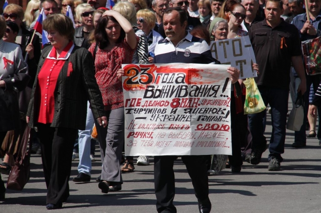 Потерянное поколение, зависшее "где-то между"... Я так подозреваю, что многие пророссийские комментаторы этого сайта тоже есть на фото. Мир, труд, май, радость через край))