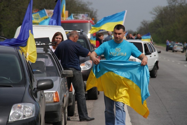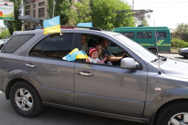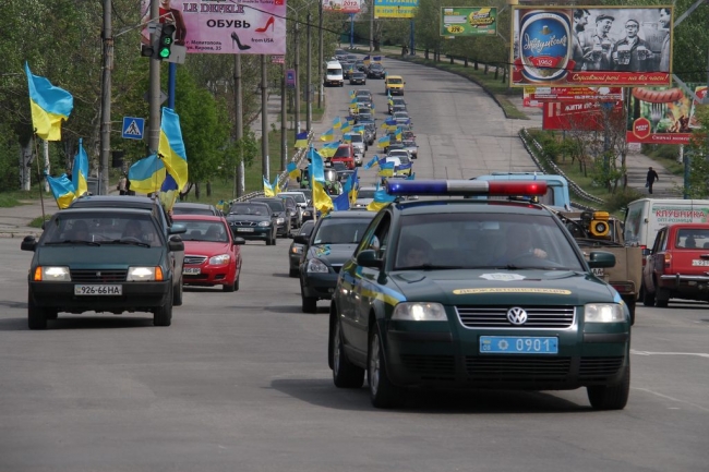 Около двух сотен автомобилей с национальными флагами проехались сегодня по главным улицам Мелитополя. Участники автопробега в очередной раз заявили, что хотят видеть Украину единой, а также таким образом поддержали украинских силовиков, армию, которая сегодня защищают страну.