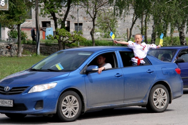 Присоединился к автопробегу и секретарь городского совета, и. о. городского головы Сергей Минько. Он приехал на велосипеде и без национального флага. «Национальная символика у меня в сердце», - сказал Сергей Анатольевич. Правда, сопровождал автоколонну руководитель не долго, отметив, что свой утренний заезд на велосипеде в 50 км он завершает на старте автопробега.