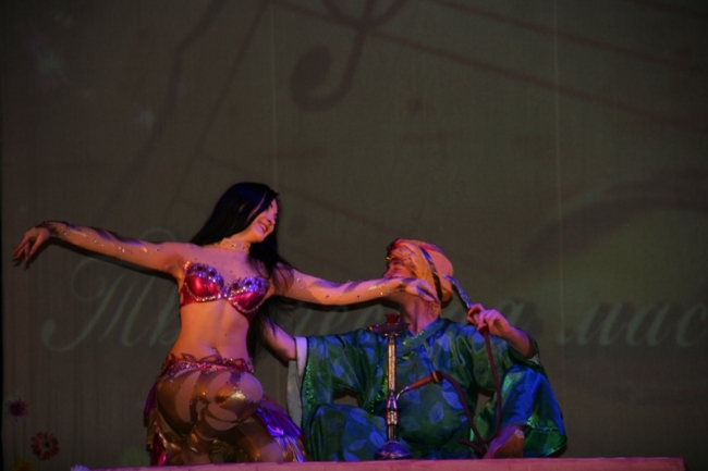 Приветствовала зрителей творческая девятка (Владимир Багишев, Сергей Попов, Светлана Усова, Сергей Сафронов, Елена Сидоренко, Вероника Кашуба, Петр Москаленко , Елена Мешкова и хормейстер, идейный вдохновитель Елена Сафронова) многоголосой «Есть только миг» из любимого всеми кинофильма «Земля Санникова». А далее артисты радовали сольным исполнением, дуэтами, квартетами и квинтетами. И каждый номер был действительно эстрадным шоу. Если мужской квартет исполнял «Белявая, чернявая» «Белорусских песняров», то на дальнем плане непростой выбор между «белявой, чернявой и рыжей» делал молодой юноша. А если Светлана Усова «рассказывала» любимую сказку падишаха, то на троне восседал монарх, а вокруг него извивалась прекрасная танцовщица. Когда же Елена Сидоренко исполняла «Оранжевые сны» Ани Лорак, вокруг нее кружилась детвора и кудрявые ангелы. Зал взорвался аплодисментами, когда мужское многоголосье грянуло «Черным вороном». Да и вообще зрители не скупились на аплодисменты, благодаря исполнителей за подаренные эмоции.