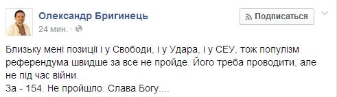 «За - 154. Не пройшло. Слава Богу», - сообщил Бригинець.