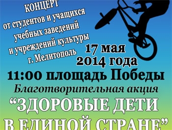 17 мая в Мелитополе стартует благотворительная акция «Здоровые дети в единой стране». В ее рамках пройдет массовый велопробег, в котором могут принять участие все желающие.