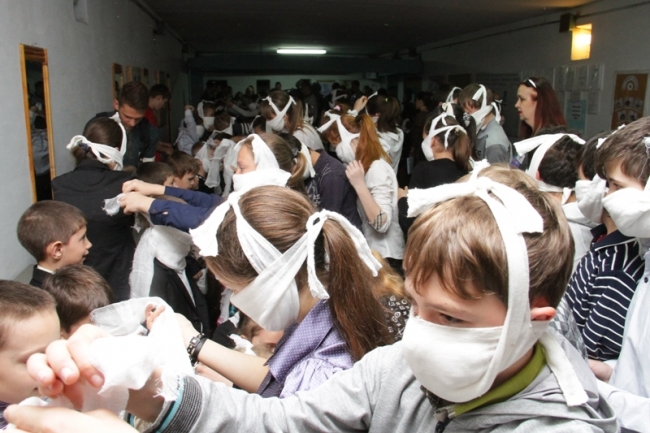 Школьники Мелитополя 15 мая вспомнили азы гражданской защиты и учились по условному сигналу эвакуироваться в подвальные помещения. Показательная тренировка при участии представителей горуо, ГСЧС, управления по вопросам ЧС горисполкома прошла на базе ООШ № 4.