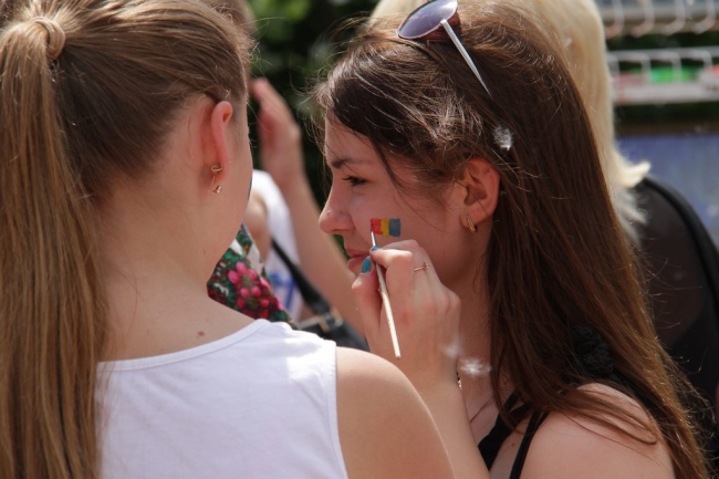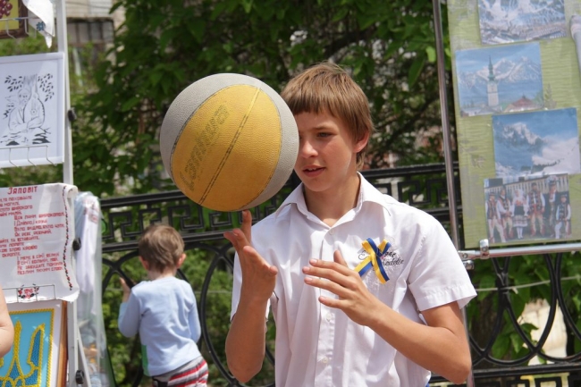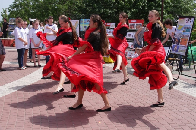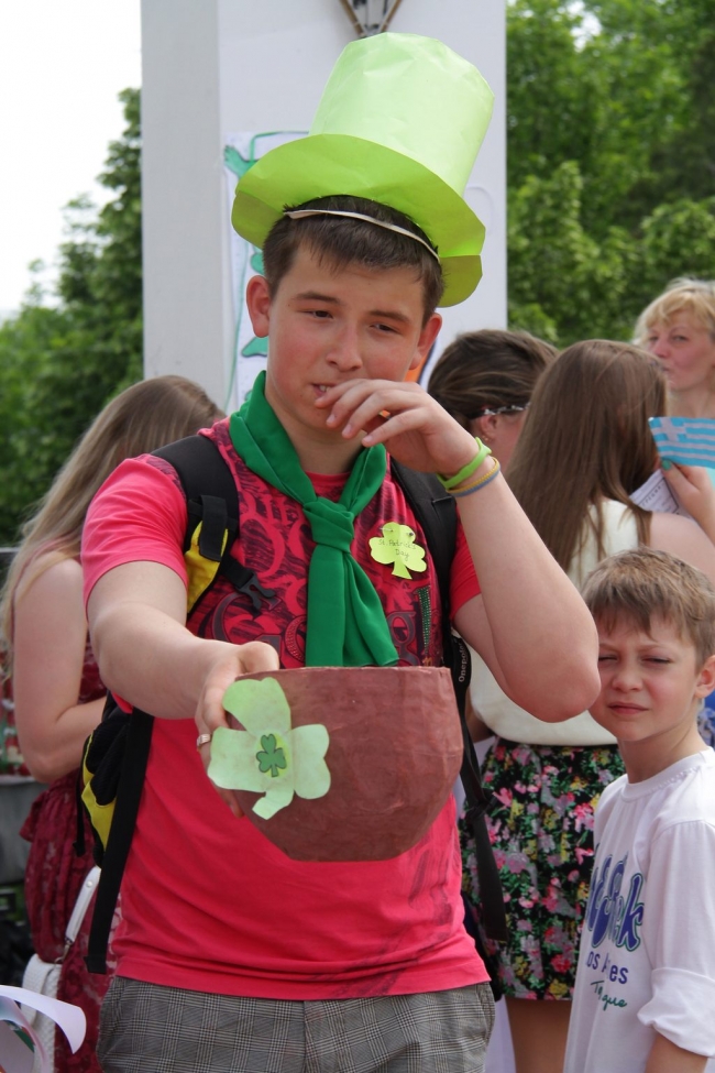 Как рассказала методист городского управления образования Светлана Романенко, в празднике приняли участие все 19 школ города. Каждое учебное заведение выбрало для представления одну из европейских стран. Так, у арки появились раскладки и столики, к которым подзывали школьники, чтобы познакомить со странами Европейского союза и не только. Гимназия № 5 предлагала угоститься сочными испанским апельсинами, СШ № 25 зазывала сфотографироваться у небольшой копии Эйфелевой башни, ученицы ООШ № 13 рисовали на щеках прохожих сине-желтые влаги Швеции и раздавали буклеты с 20-ю невероятными фактами об этой стране, ребята из УВК № 16 предлагали испытать счастье – вытащить из вороха четырехлистный клевер, и кормили счастливчиков конфетами, а ООШ № 8 учила всех желающих делать украинские вытынанки.