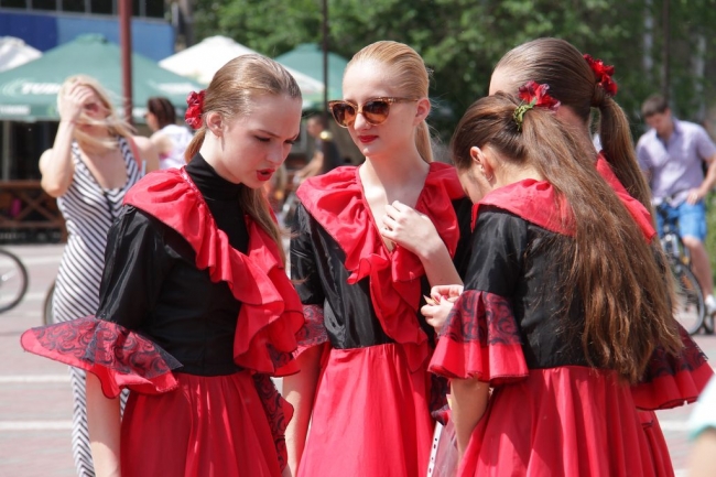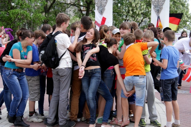 Параллельно команды каждой школы зазывали прохожих сыграть в национальную игру, сплясать или сложить пазл – карту страны. Гимназия № 19, как всегда, отличилась: устроила на площади танцевальный флешмоб под задорную песенку «Вместе» Потапа и Насти.