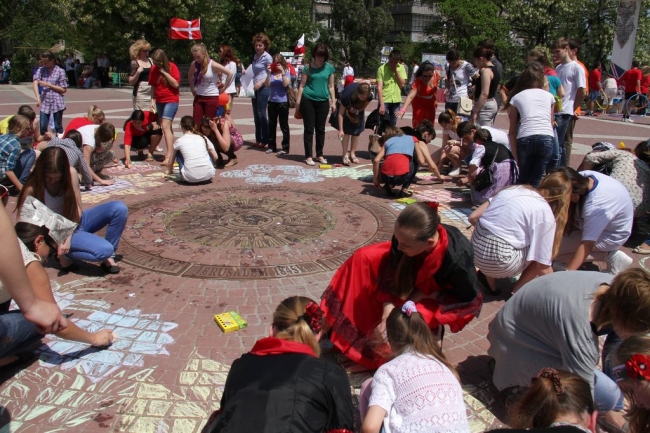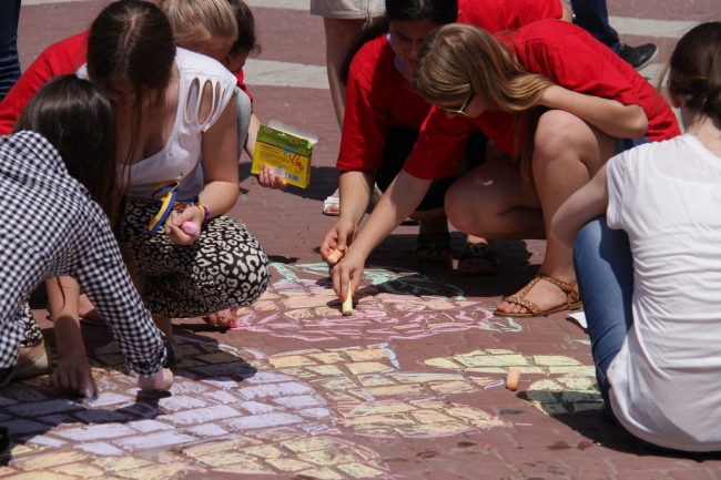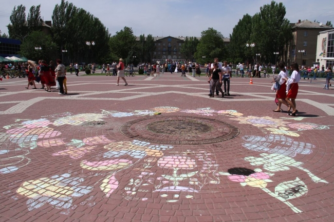А в финале праздника в центре площади «расцвел» необыкновенный букет: школьники нарисовали мелом на асфальте цветы, которые символизируют то или иное европейское государство. Так, на земле «распустились» тюльпаны и лилии, розы и подсолнухи, ландыши и ромашки.