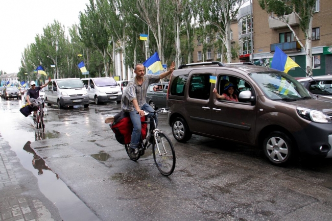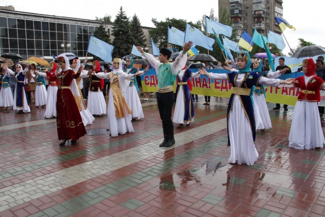 Автопробег «Моя родина – єдина Украина» собрал более 250 автомобилей. Начался он исполнением украинского гимна , под аккомпанемент гитары Виталия Лиходеда. После этого длинная вереница машин под украинскими сине-желтыми и голубыми крымско-татарскими флагами объехала весь город.