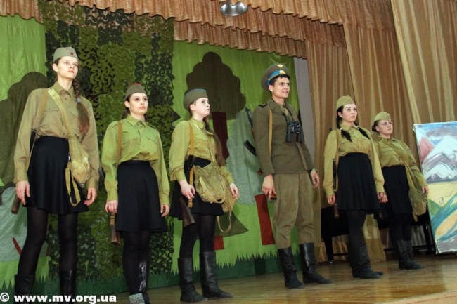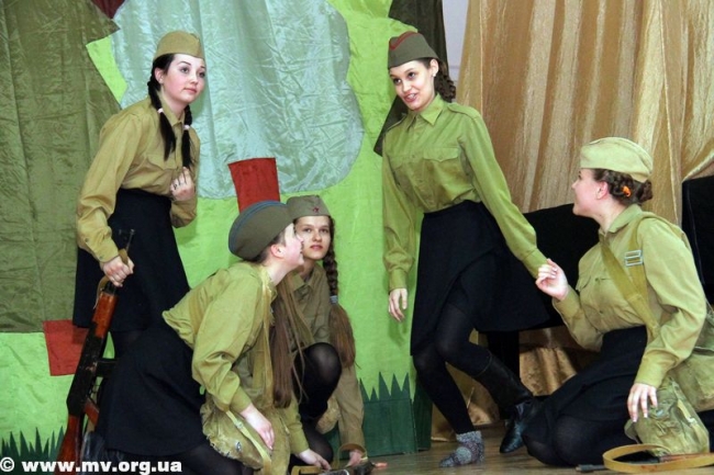 В спектакле "А зори здесь тихие" принимают участие пять выпускниц театрального отделения этого года (это их дипломная работа) и четыре выпускницы прошлого года, а также артисты образцового социально-психологического театра "Маска" Мелитопольского лицея железнодорожного транспорта. Роль сурового, но доброго и мудрого коменданта разъезда старшины Федота Васкова воплотил Александр Олешко, зенитчиц сыграли: Лизу Бричкину - Лиза Сенько, Галину Четвертак - Яна Алехина, Соню Гурвич - Катя Антипова, Женьку Комелькову - Полина Степаненко, младшего сержанта Риту Осянину - Настя Узунова, сержанта Кирьянову - Виктория Бульба. Девушки в полной мере раскрыли характеры своих героинь, заставив зрителей смеяться и сопереживать. В финале в зрительном зале, конечно, были те, кто сдерживался и старался не проронить слез, но большинство зрителей плакали, не стесняясь. Как оказалось, и современные дети понимают, что такое любовь к Родине, как страшна смерть, особенно когда ты молод, красив, полон сил и планов, как ужасна и уродлива война, отнимающая жизни.