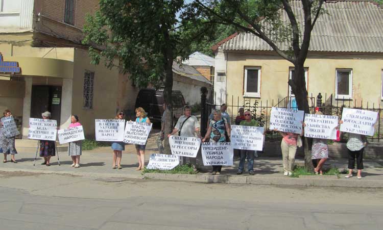С плакатами «Нет сценарию Югославии на Украине», «Немедленно прекратить братоубийственную войну на Украине», «Люди, не ждите, когда беда постучит в ваш дом» и другими подобными лозунгами чуть более десятка человек стояли напротив здания мэрии. Организаторы митинга – Валентин Смирнов и Екатерина Уманец.