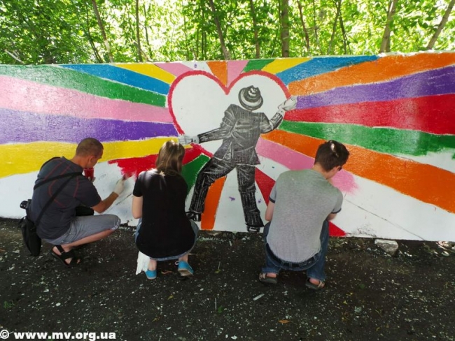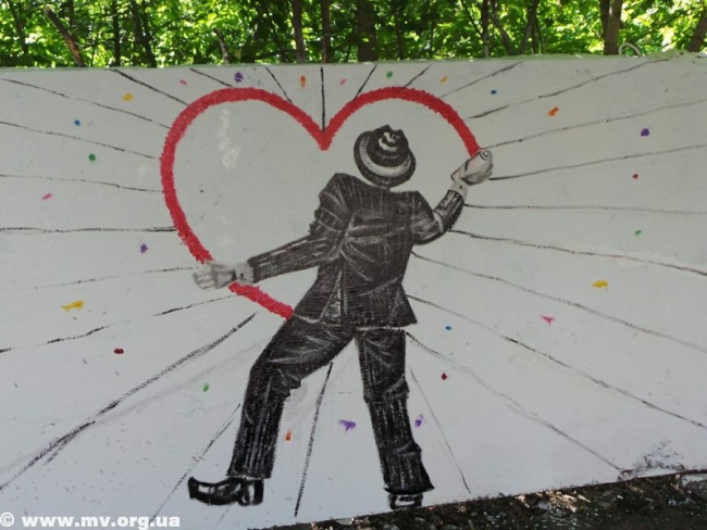 К 9 часам утра у долгостроя на перекрестке пр. Б. Хмельницкого и ул. Дзержинского на предварительно прогрунтованных плитах ограждения долгостроя представители инициативной группы People.ua (авторы позитивного цикла на пересечении ул. Фрунзе и пр. Б. Хмельницкого) нарисовали фигуру человека, рисующего сердце. Разноцветные лучи, исходящие из сердца, предложили раскрасить журналистам и руководителю города. старт общегородской акции «Мир лучше, город чище, люди добрее!».
