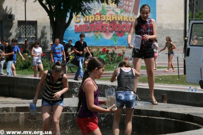 11 июня мелитопольская молодежь решила устроить очередной мокрый флешмоб под традиционным названием «Водный бум». Как всегда несколько сотен ребят списались в социальных сетях и условились о встрече на площади Победы 11 июля в 11.00. Но, придя в день Ч к фонтану, обнаружили, что в нем нет воды.