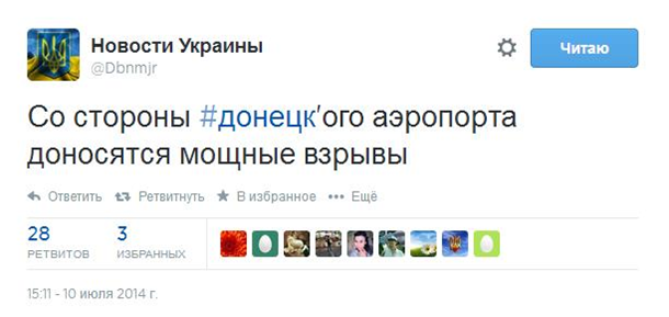 Также в сети появилось видео, на котором слышны взрывы. По утверждению авторов, события на нем происходят в четверг, 10 июля, в районе аэропорта в Донецке.