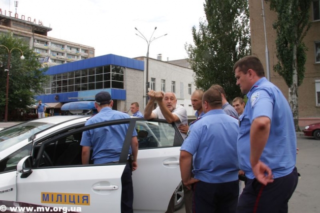 Далее М. Кумок поднялся в сопровождении милиционеров на 8 этаж гостиницы, где расположена администрация гостиницы, там его встретил один из представителей этой самой администрации. И как только часы показали 14.00, милиционеры начали, по их словам, выполнять вступившее в силу именно в этот момент решение суда о принудительном приводе М. Кумока к следователю горотдела для проведения следственных действий по уголовному делу, возбужденному по ст. 158-1 (за "двойное" голосование 25 мая на выборах Президента). Они насильно вывели его из помещения гостиницы, надели наручники и усадили в служебный автомобиль.