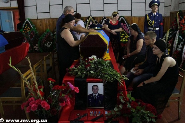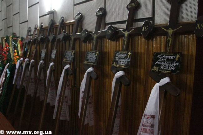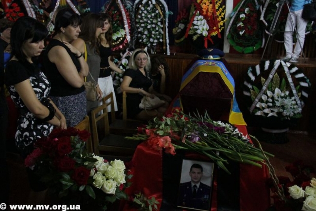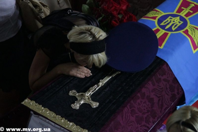 С самого утра к Дому офицеров авиагородка идут люди и несут охапки цветов. Полутемный зал, плачет скрипка и рыдают люди. Не только близкие родственники. Слезы на глазах у людей в военной форме, пытаются скрыть слезы мужики в штатском. Женщинам проще – оплакивать девятерых героев, отдавших свои жизни за Украину, можно не таясь…