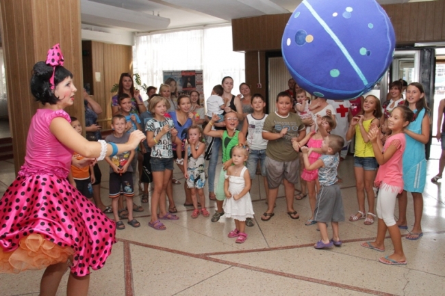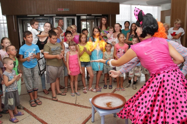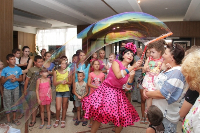 12 августа в фойе ДК им. Т. Шевченко состоялось шоу мыльных пузырей, в котором с удовольствием приняли участие более 30 детей-переселенцев из зоны АТО.