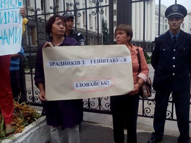 У здания Минобороны требуют отправить помощь для военных в Иловайске