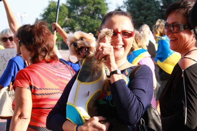 Масса национальных флагов и национальной символики, сине-желтые тона в одежде, улыбки и однозначный настрой: Мелитополь - это Украина, а победа будет за нами.