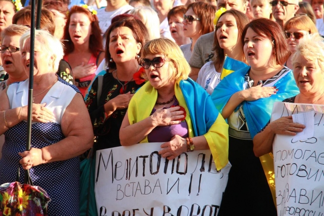 «Слава Україні», «Україна понад усе», «Мелитополь - это Украина» - скандировали мелитопольцы. Люди разных возрастов, разного достатка и социального положения вышли, чтобы заявить о готовности отстоять свой город. И это действительно прекрасно.