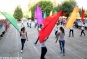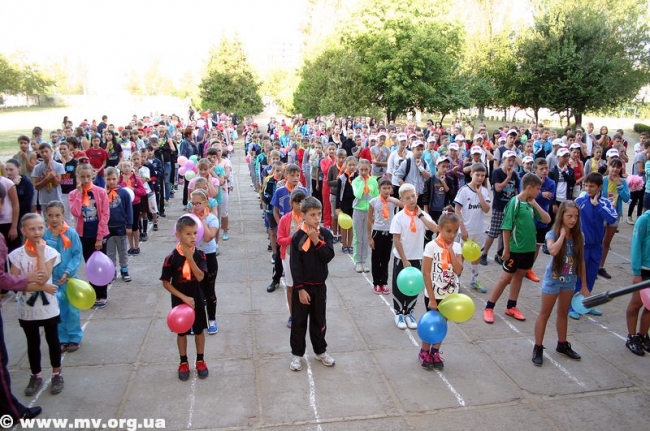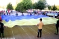 Праздничная линейка началась парадом флагов и на школьном дворе развернулся огромный сине-желтый стяг. Его вынесли лучшие спортсмены ООШ, победители городских, областных, национальных, а то и международных соревнований. Все дружно ребята исполнили гимн Украины и началась торжественная часть.
